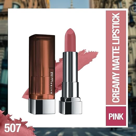 Maybelline New York Matte Lipstick, Intense Colour, Moisturised Lips, Color Sensational Creamy Matte, 507 Almond Pink, 3.9g